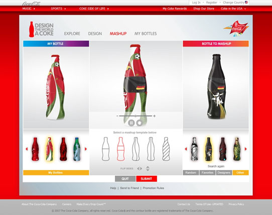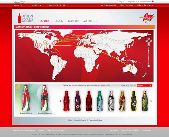 Design a Coke bottle, find another bottle across the world, and mash em up. Coca-Cola creates global connections while allowing users to make the iconic bottle their own.