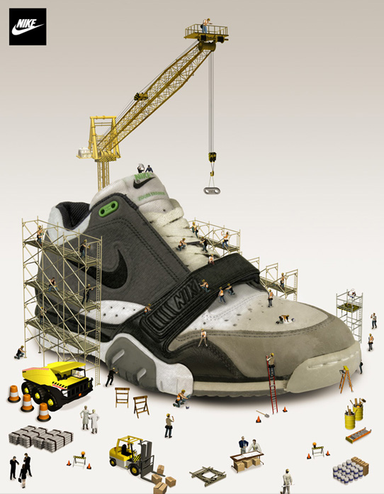 Nike unveils a new initiative called “Restoration”, where Nike’s oldest but most iconic shoes are updated with more cutting edge material and technology. To communicate the idea, visitors to the site witness the restoration through the labors of many tiny miniature construction workers, restoring the shoe as if it were a building.